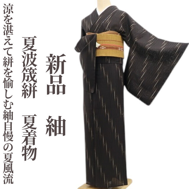 - tomihisa 新品 夏波筬絣 夏着物“涼を湛えて絣を愉しむ紬自慢の夏風流”正絹 仕付け糸付 紬 5946