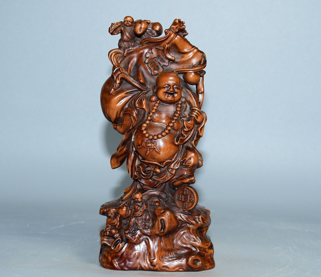 - 『館蔵珍品 黄楊木製 細密彫 招財進寶彌勒仏 仏像 宗教 仏教古美術 供養品』稀少珍蔵品 古賞物 貴重物品 収蔵品 中国古美術 時代物 古董品