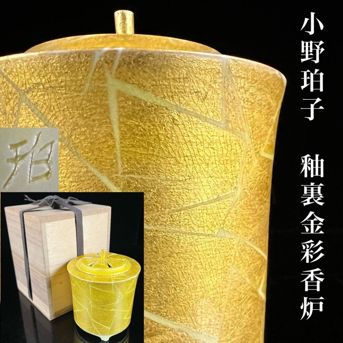 - 人気陶芸家 小野珀子 釉裏金香炉 12.5cm 合箱付 香道具 金襴手 佐賀県重要無形文化財 古美術品 骨董[麌]