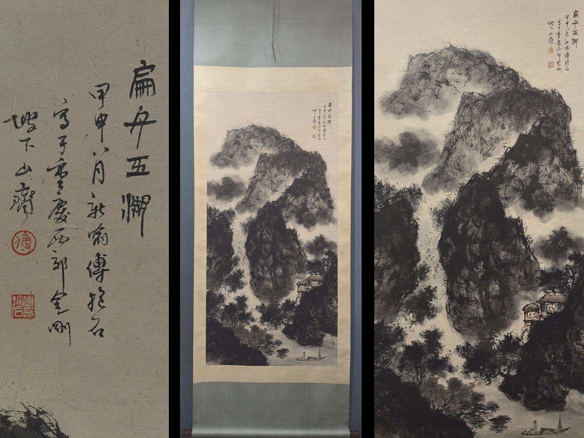 - 中国書画「傅抱石 山水図」肉筆紙本 掛け軸 墨寶妙品 書画立軸 巻き物 古美術 旧蔵出
