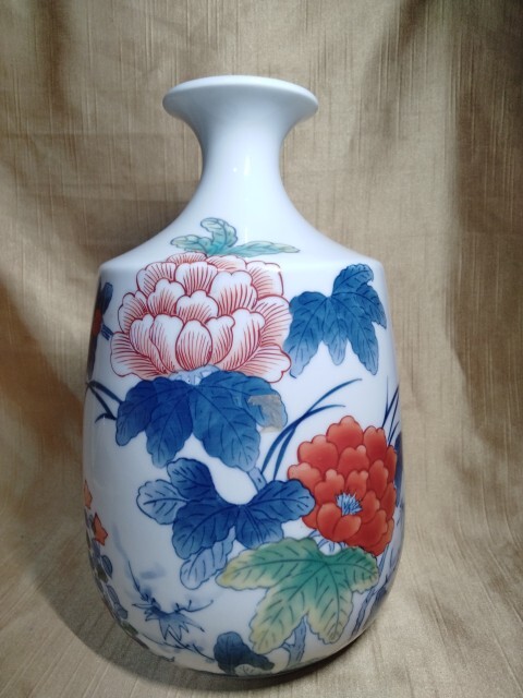 - 鍋島 青山 花瓶 22x6cm 牡丹