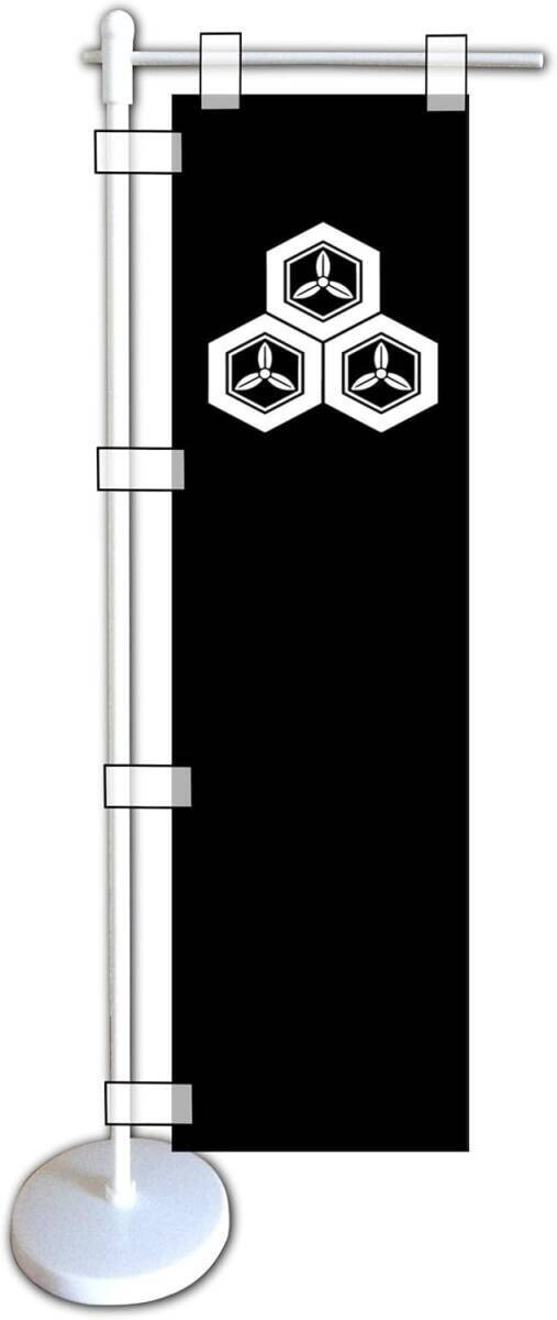 - ミニのぼり「直江兼続 ミニのぼり旗 直江兼続 ミニ幟旗 黒【三つ盛亀甲に三つ葉】 家紋 戦国武将 前立て 愛軍旗 兼続 軍旗 B」送料360円