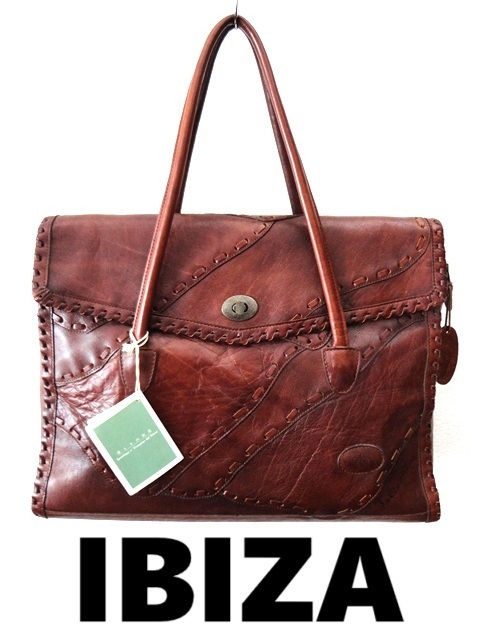 - 新品/限定品/IBIZA:イビザ/牛革×フランス産 バッファローレザー/オールレザー パッチワーク フラップ付き トートバッグ/茶/ビジネストート