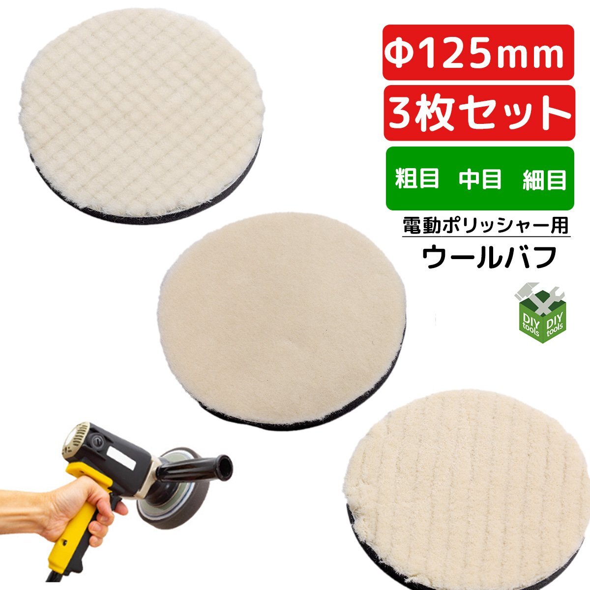 - 全国【送料無料】磨き用 研磨 ポリッシング 電動 バフ ポリッシャー スポンジ 125mm 粗目 中目 細目3枚セット【クリックポスト】
