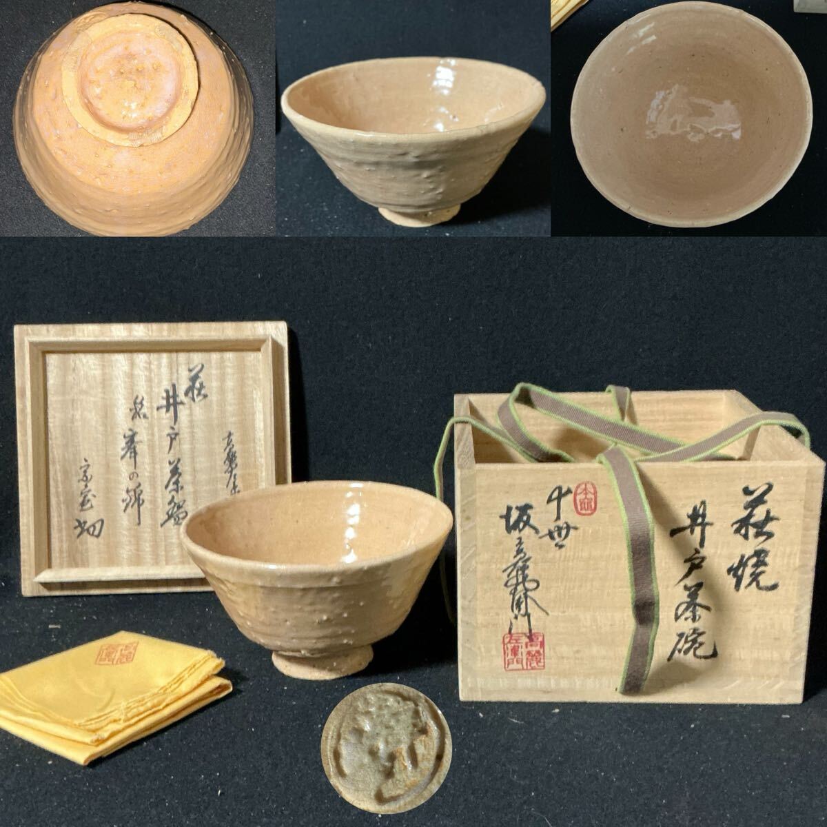 - 十世坂高麗左衛門作 裏千家 淡々斎 書付 萩茶碗 茶道具 抹茶碗 共箱入 萩茶碗