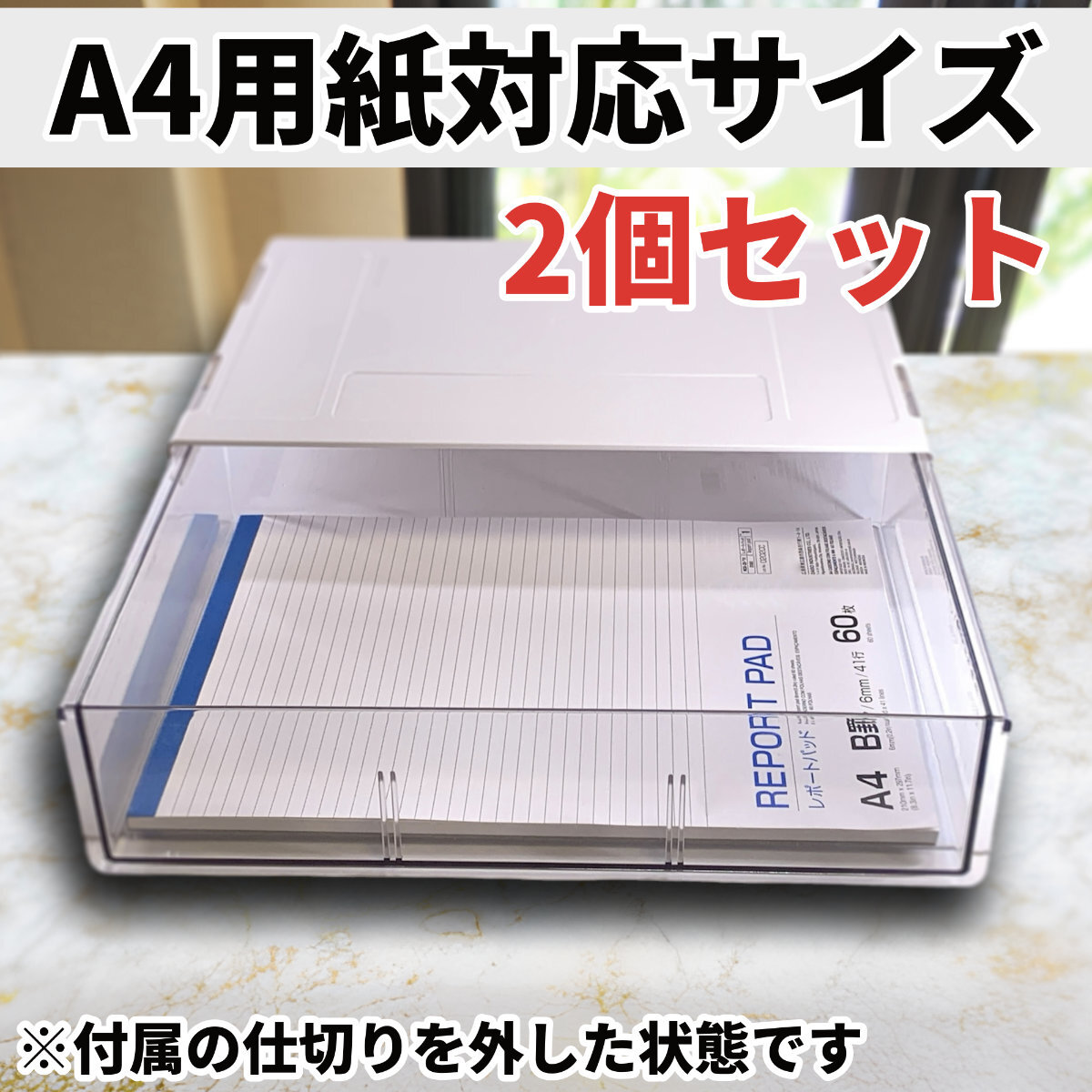 - 後付け引き出し 2個セット A4サイズ対応 仕切り付きタイプ 透明 デスク下収納