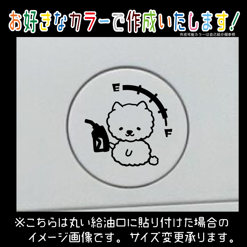 > 給油口-犬④ポメラニアン1ステッカー 文字絵柄だけ残るカッティングステッカー・車・ガソリン・レギュラー・ハイオク・犬・イヌ