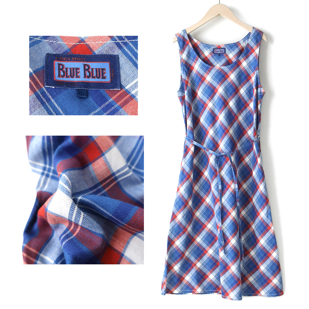 > 超美品☆BLUE BLUE リネン,レーヨン混ツイル ノースリーブワンピース クラシックチェック 聖林公司