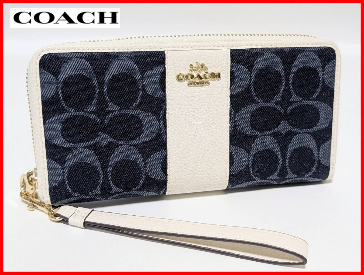 - 即決 COACH コーチ ラウンドファスナー 長財布 白青 ウォレット レディース メンズ mbs