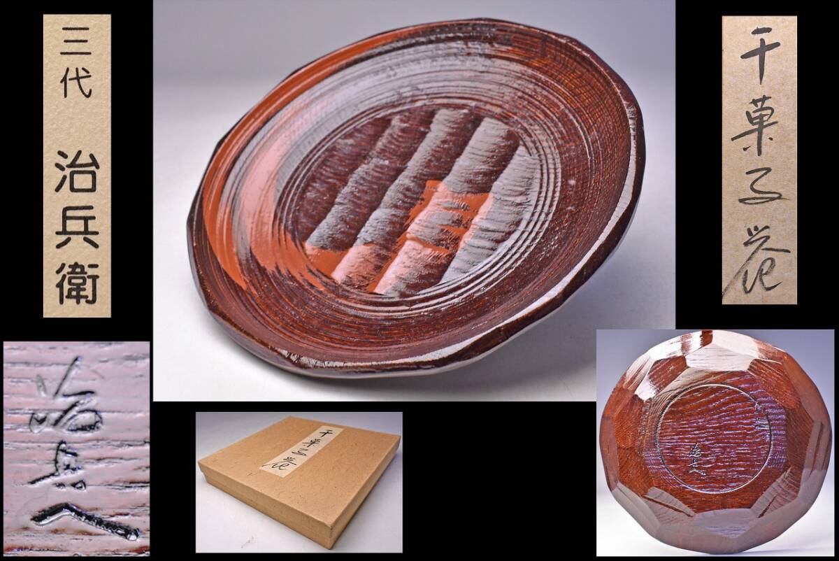> 村瀬治兵衛 ★ 漆器 干菓子盆 ★ 紙共箱 栞 ★ 木地師 7代目 塗師 ★ 造形見事で見込みの勢いのある朱塗りが素晴らしい ★ 茶道具 食器