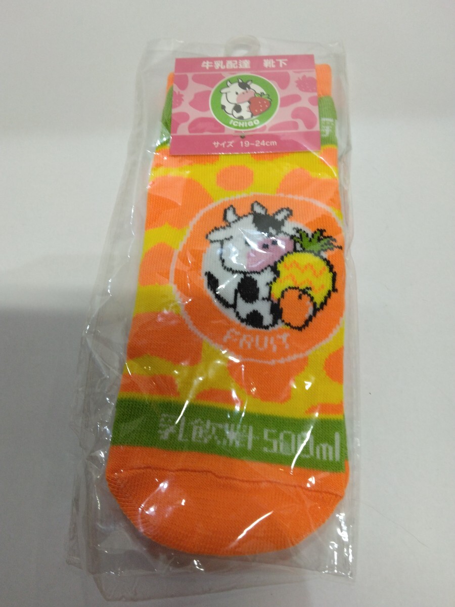 - 牛乳配達 靴下 スニーカーソックス 19-24cm フルーツ牛乳 オレンジ 未使用