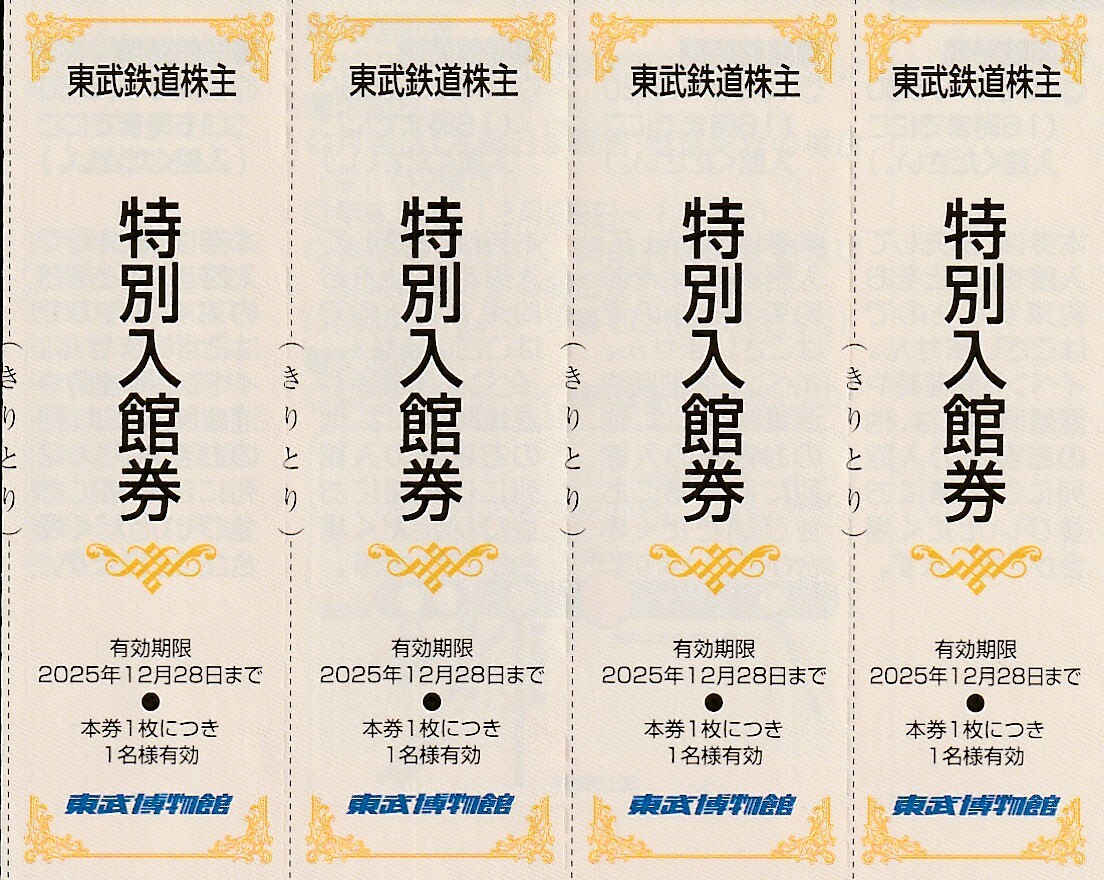 - 東武鉄道★株主優待券★東武博物館★特別入館券★4枚★送料85円~★即決