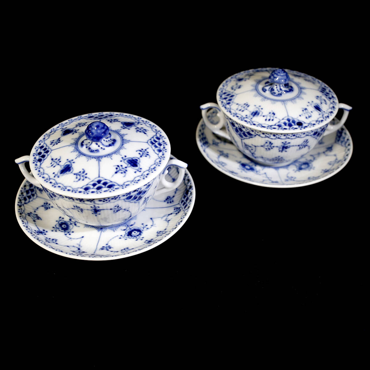 - 【美品 2客】ロイヤルコペンハーゲン ハーフレース ダブルハンドル スープカップ