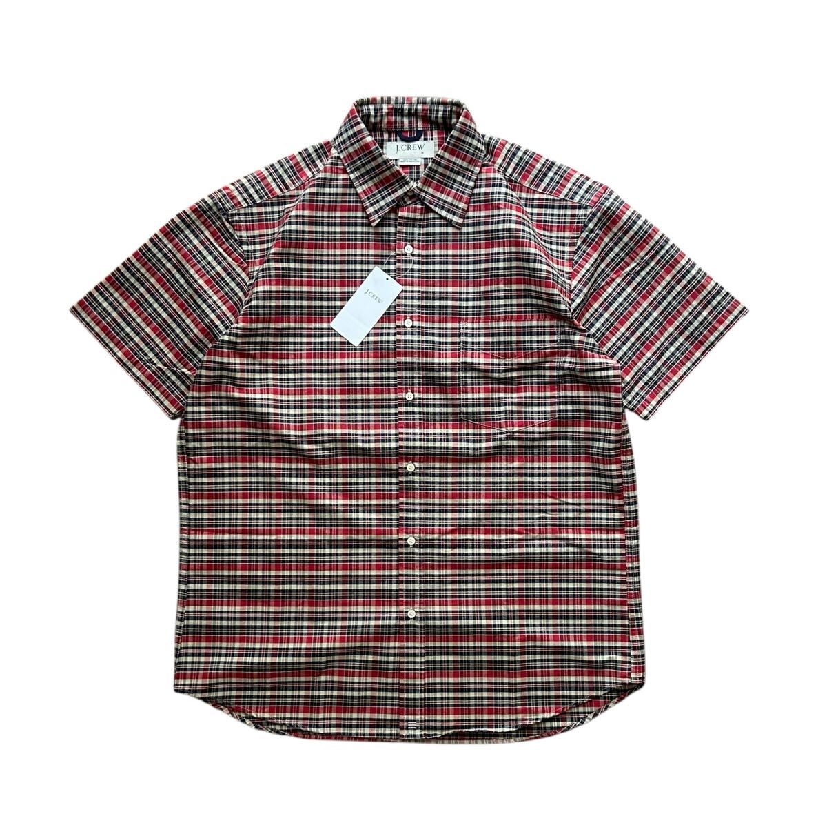 > 00’s 新品未使用品 JCREW ジェイクルー S/S チェックシャツ Mサイズ レッド ベージュ コットン100% オックスフォード 半袖 デッドストック