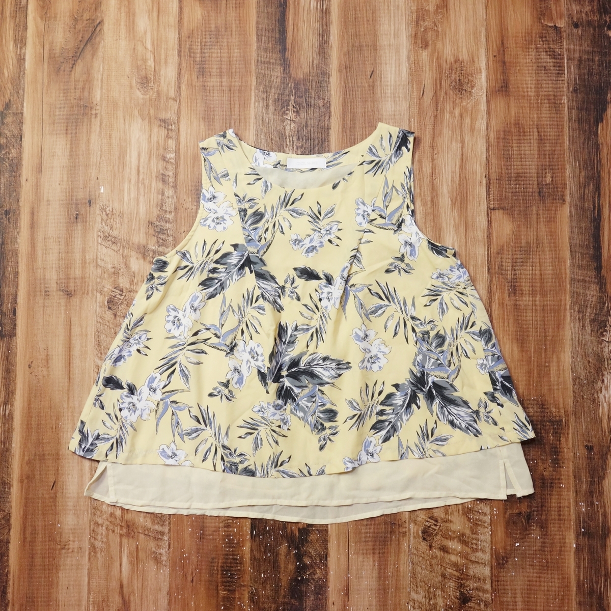 > 美品 セシルマクビー CECIL McBEE 花柄レイヤード風ノースリーブブラウス レディース Aライン ボタニカル フェミニン Mサイズ LM24