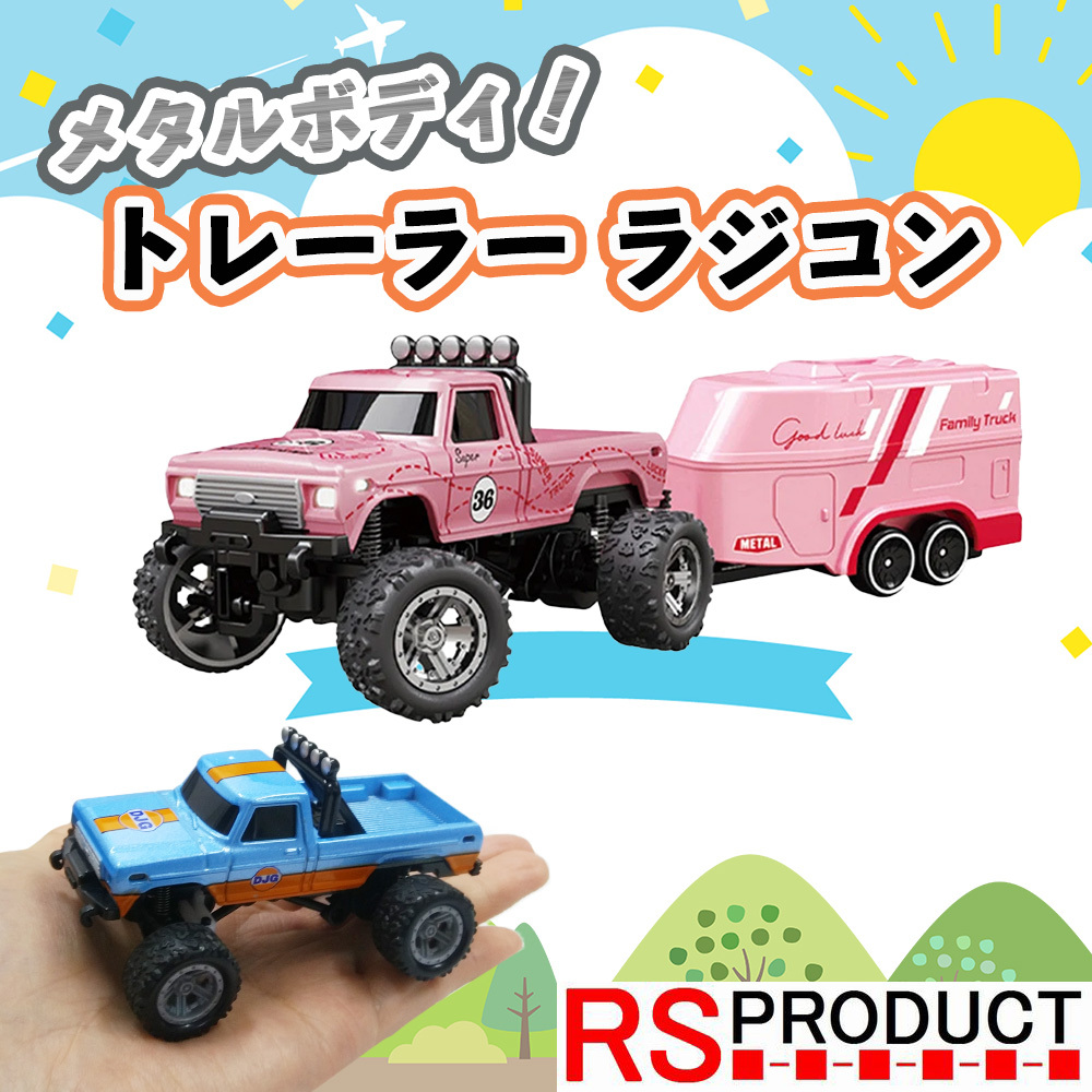 - ピンク! 重量感抜群 メタルボディ 手のひらサイズ ミニ トレーラー ラジコン 自動走行 ライト ランプ ドア開閉 小さい 子ども 人気 HG4-80