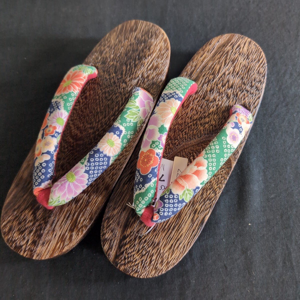 > レトロな鼻緒柄が可愛い下駄 桐 焼き 高級 女性用 24cm フリーサイズ Mサイズ 適合足サイズ22~24cm 新品No4