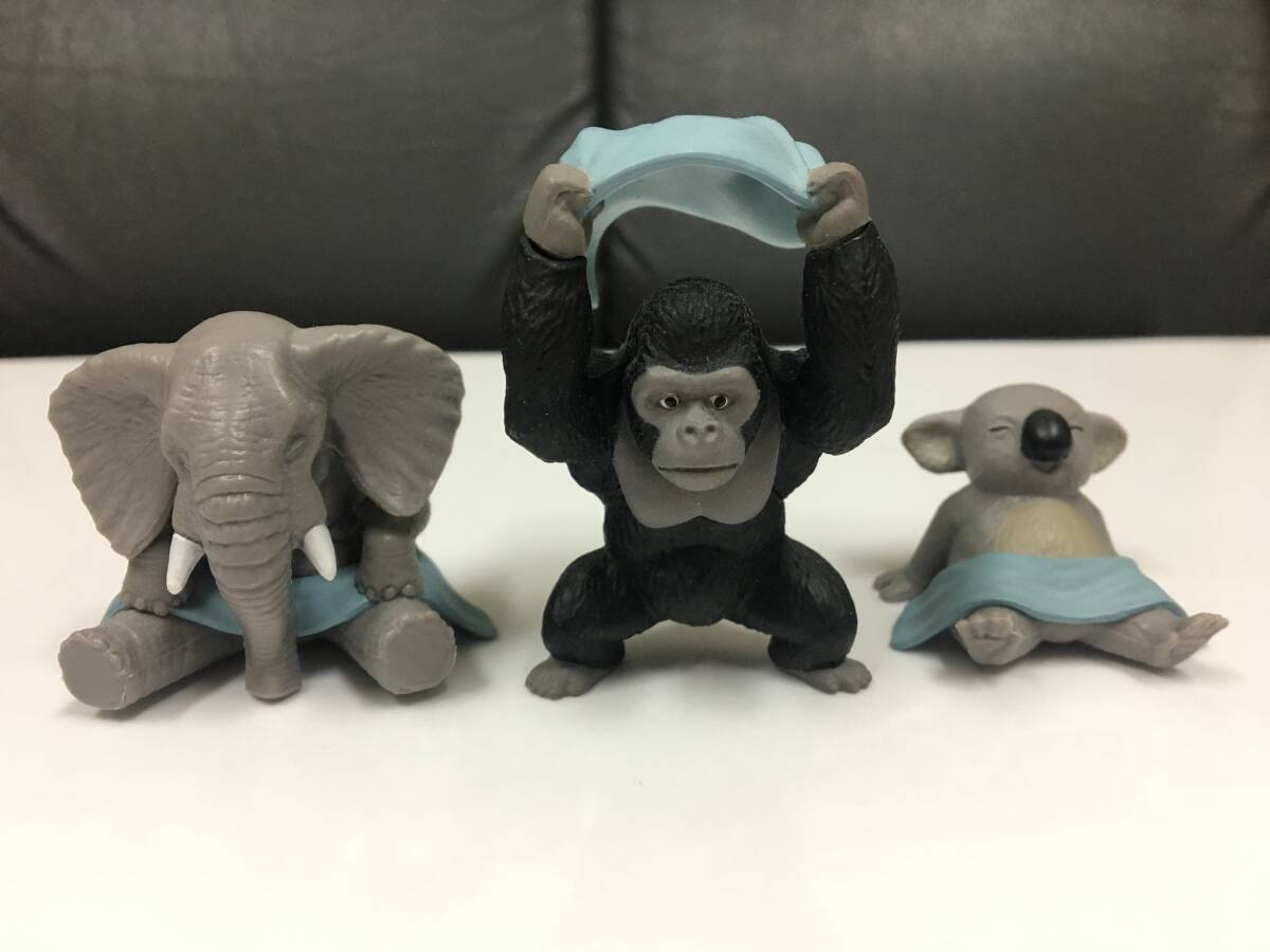 - バンダイBANDAI「どうぶつサウナ03. ゾウ ゴリラ コアラ 3種セット」ガチャ フィギュア 模型 (HA-1保管)