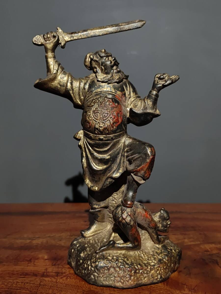 - 仏像 清代 旧蔵 純銅泥金朱砂造像【鍾馗伏魔】 チベット古寺 銅製 銅琉金 唐物 收蔵品 時代物 古美術 古置物 希少珍品 供養品 文房具6.11