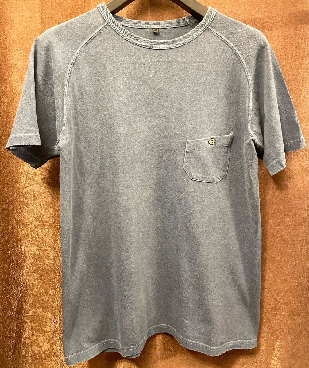 - MADE IN JAPAN製 NIGEL CABOURN ヴィンテージ加工 ポケット付き半袖Tシャツ ブルーグレー 46サイズ ナイジェルケーボン 日本製 Tシャツ