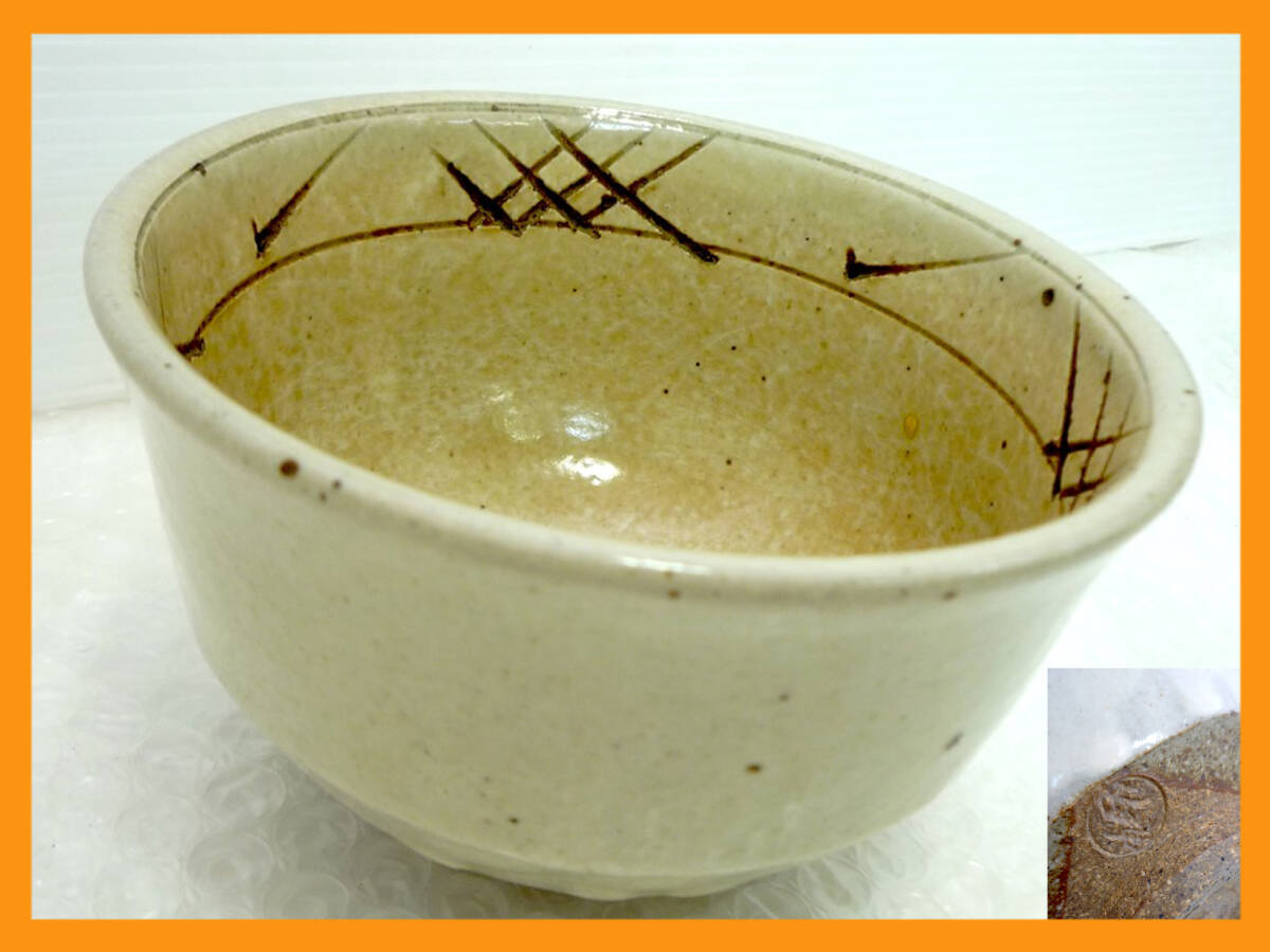 - 旧家蔵出 上神焼 かずわやき 抹茶碗 茶碗 鳥取県 希少 名品 逸品 本物 在銘 綺麗 銘有 秀逸 茶道具 茶器 和食器 料亭 伝統工芸 縁起物 必見