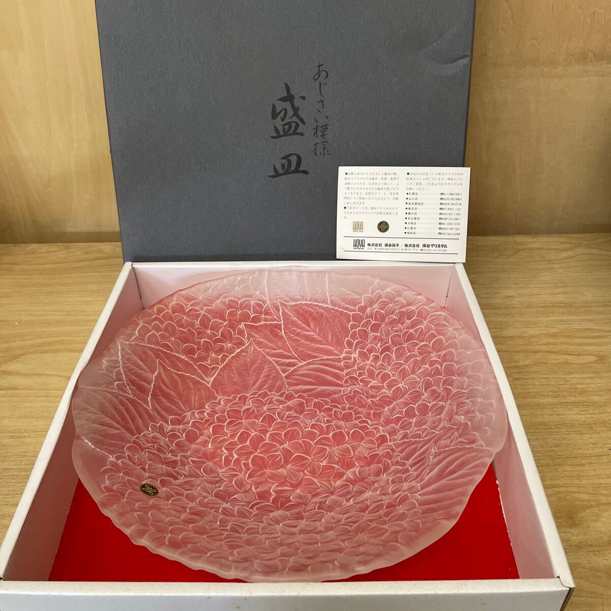 - HOYA 大皿 アジサイ あじさい模様 盛皿 クリスタルガラス プレート ホヤクリスタル 長期保管品