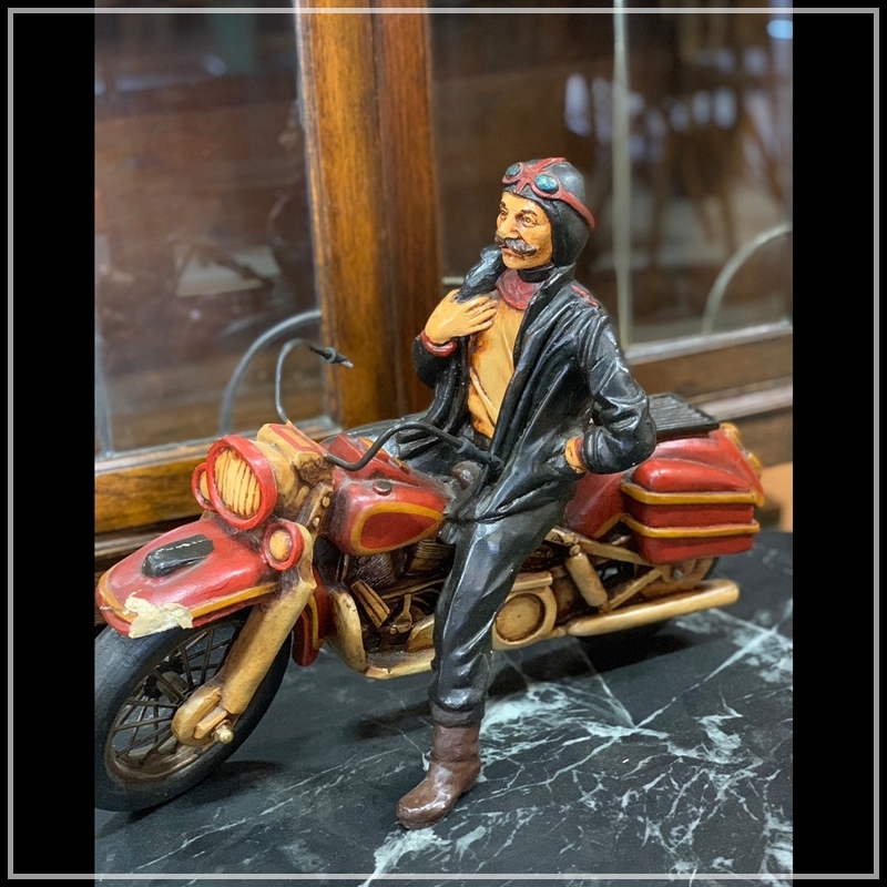 - 【福岡】レトロ アメリカン ビンテージ バイク 置物 BIG フィギュア USA 割れあり ハーレーダビッドソン バイカー イケオジ【ME0828-1】