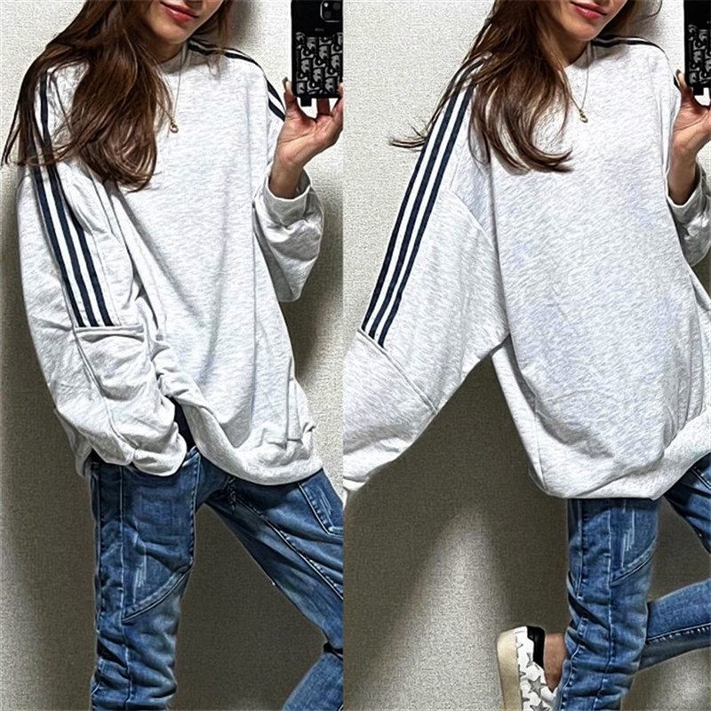 - 【新品!未使用!】袖ラインゆったりオーバーロンT Lサイズ レディース ボーダーライン 春秋