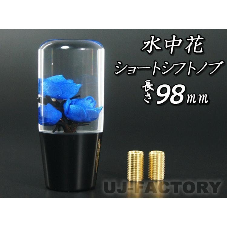 - 【水中花 バラ】★ブルー ショートシフトノブ 98mm 変換アダプター付 クリスタル トラック デコトラ ミッション 旧車 軽トラ レトロ(A-6)