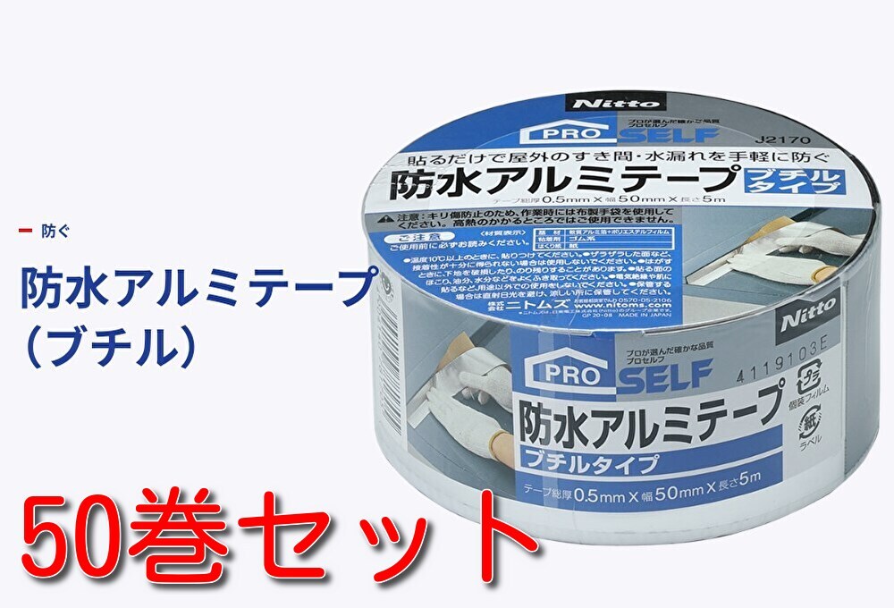 - ニトムズ 防水アルミテープ J2170 ブチルタイプ 幅5cm x 長さ5m 50巻セット 55000円相当