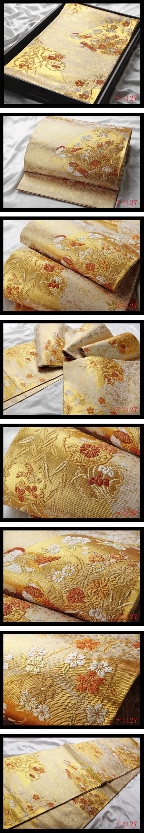 - 蔵【テ1127】西陣逸品 振袖可 雪輪鴛鴦草花紋 気品豊かに 正絹純金糸六通高級美術袋帯 未使用◇検◇簪着物名古屋帯和装小物帯締め