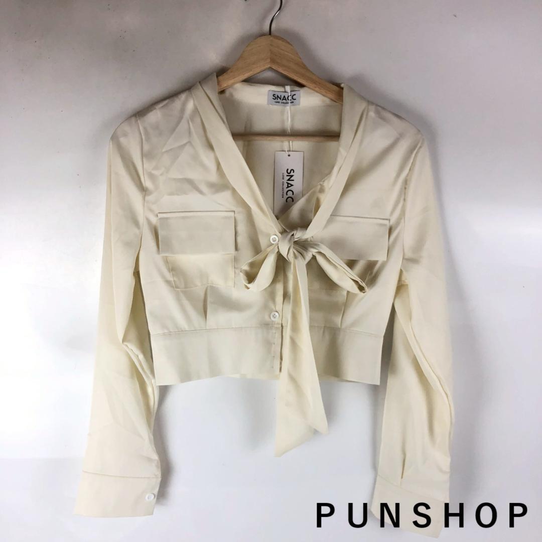 - SNAKC スナック クロップド丈 ブラウス シャツ ホワイト ボウタイデザイン
