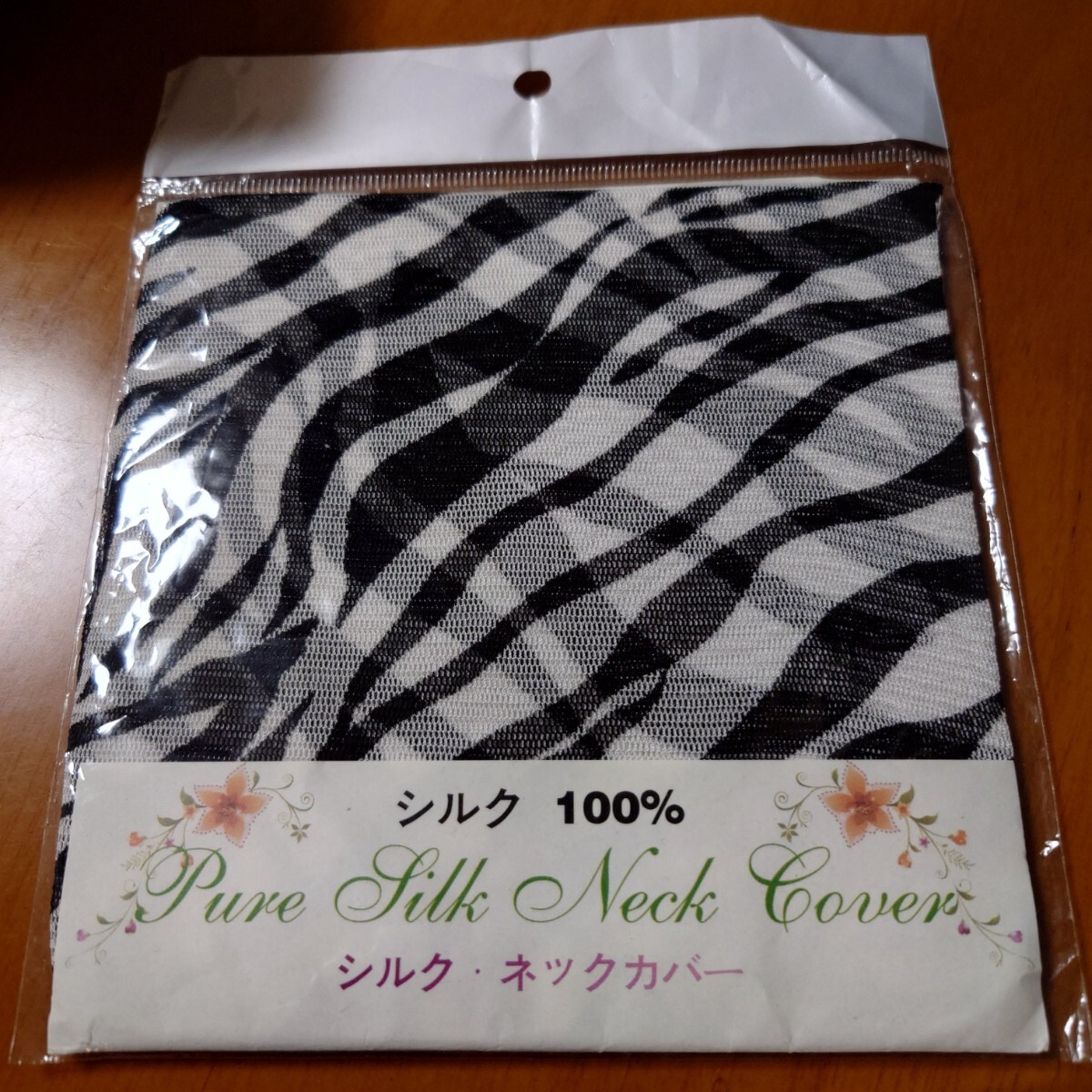 - シルクネックカバー 送料メール便発送 絹100% パワーネット ゼブラ柄 白×黒 首元のおしゃれに、日焼け対策に UVケア