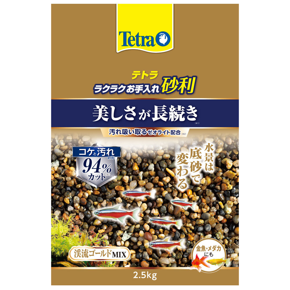 - テトラ ラクラクお手入れ砂利 渓流ゴールドMIX 2.5kg