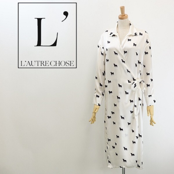 - ◆L' AUTRE CHOSE ロートレショーズ シルク100% 動物柄 カシュクール ワンピース ルームウェア 白 ホワイト×ブラック 40