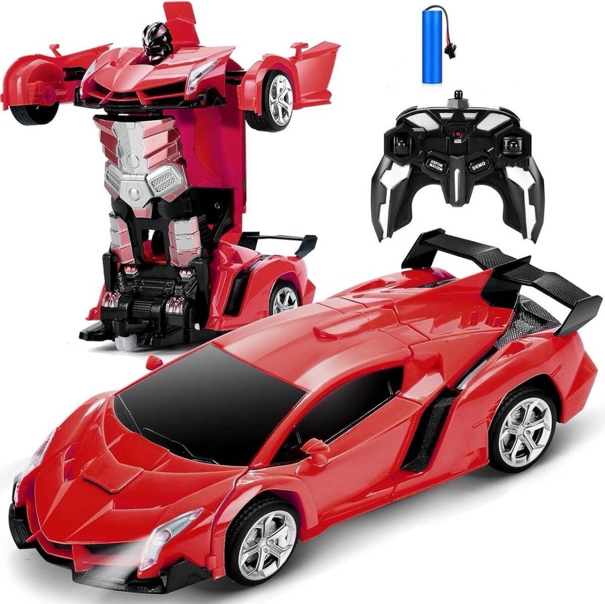 - ラジコンカー 車おもちゃ スタントカー 警察車 充電式 ロボットに変身(赤)
