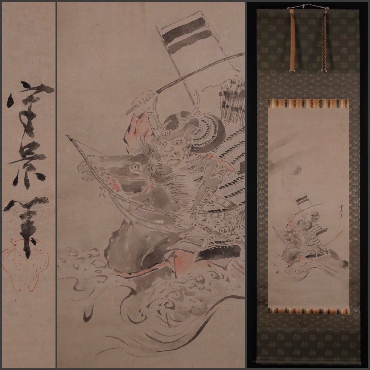 - 【模写】吉】12507 久隅守景 宇治川先陣図 源義経 範頼 治承・寿永の乱 狩野派 物語絵 武将 武者 武士 大和絵 歴史画 掛軸 掛け軸 骨董品