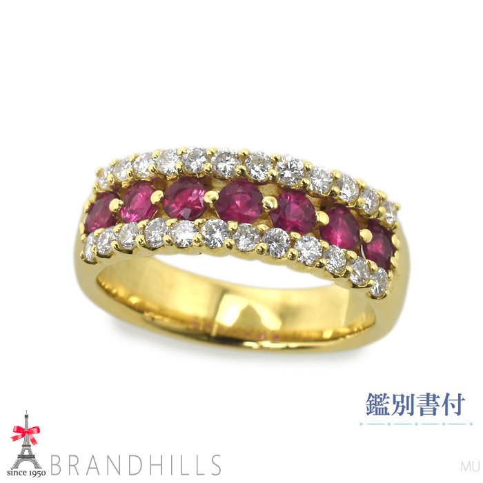 - ルビー 0.70ct ダイヤモンド 0.48ct リング 鑑別書 K18金 750YG イエローゴールド 指輪 #11.5 7.1g 極美品