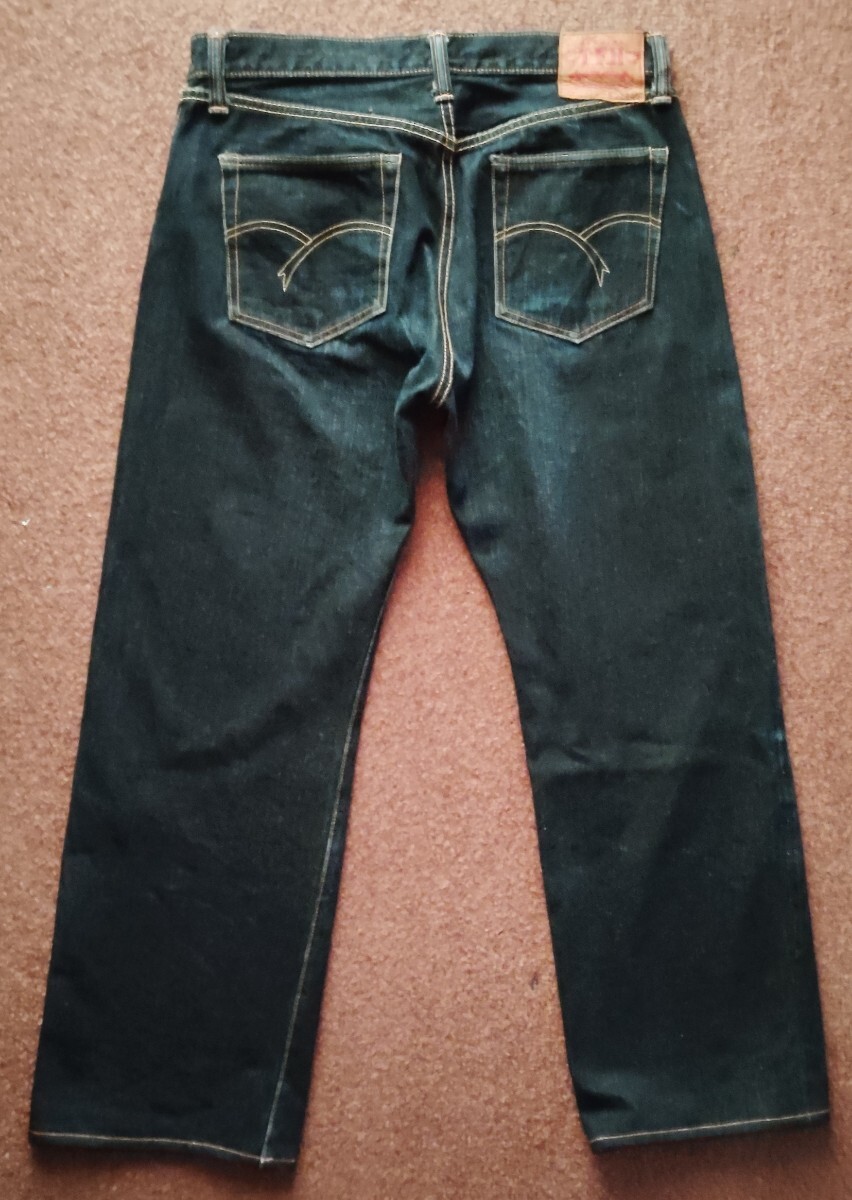 > 【W34】フラットヘッド 3005 ジーンズ ジーパン デニム 濃紺 ウエスト約41cm 股下約70cm 裾幅約23cm 綿100% ヘビーオンス