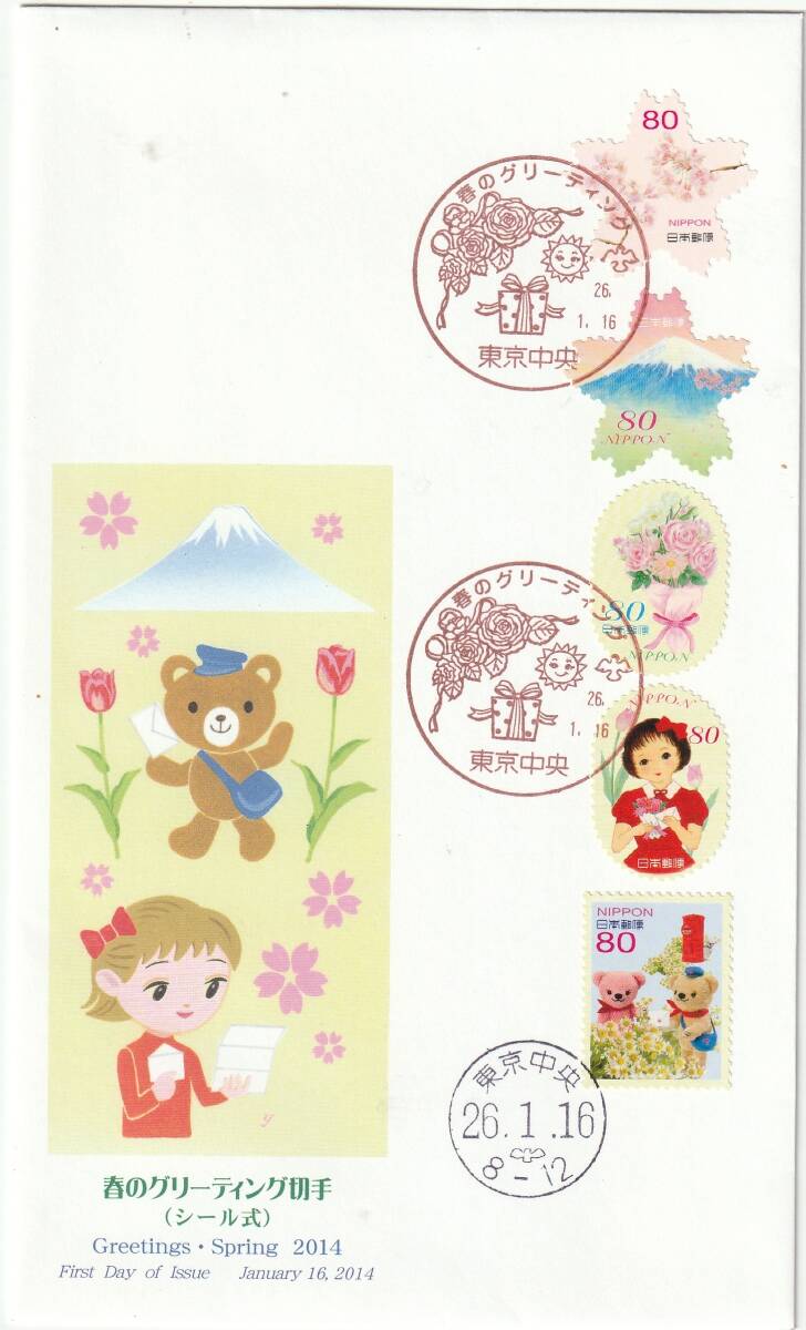 - FDC 2014年 春のグリーティング切手 50円80円3消し 2通 JPS