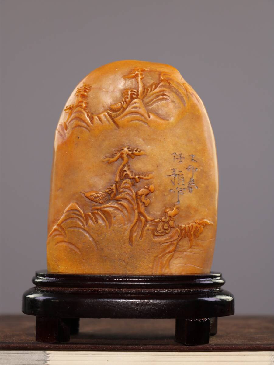 - 蔵友旧蔵出 寿山石 田黄石 細密彫 童子指路紋 印章 箱付 貴重品 稀少物品 置物 賞物 中国時代美術品