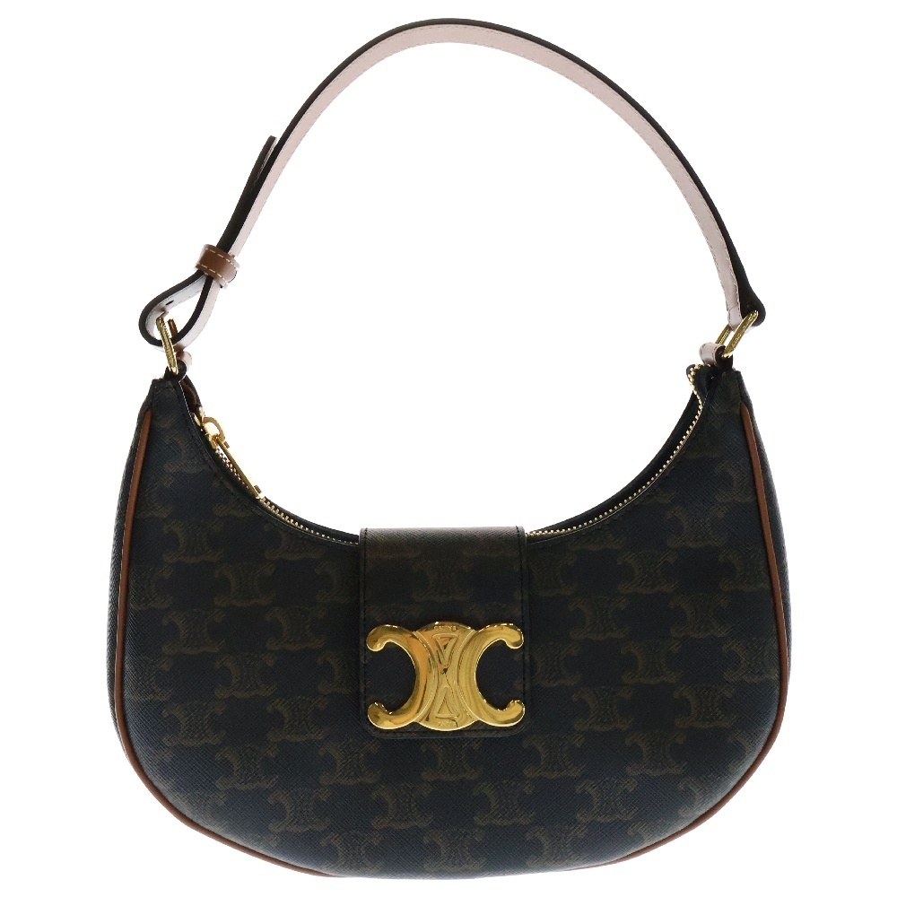 > CELINE セリーヌ トリオンフ アヴァ ミディアム ワンショルダーバッグ ハンドバッグ ブラウン PVC×レザー ゴールド金具