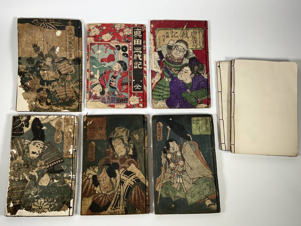 - 木版画 義仲旭軍配 義経一代記 楠二代軍記 鹿児島戦記 阿漕平治物語 他計8冊