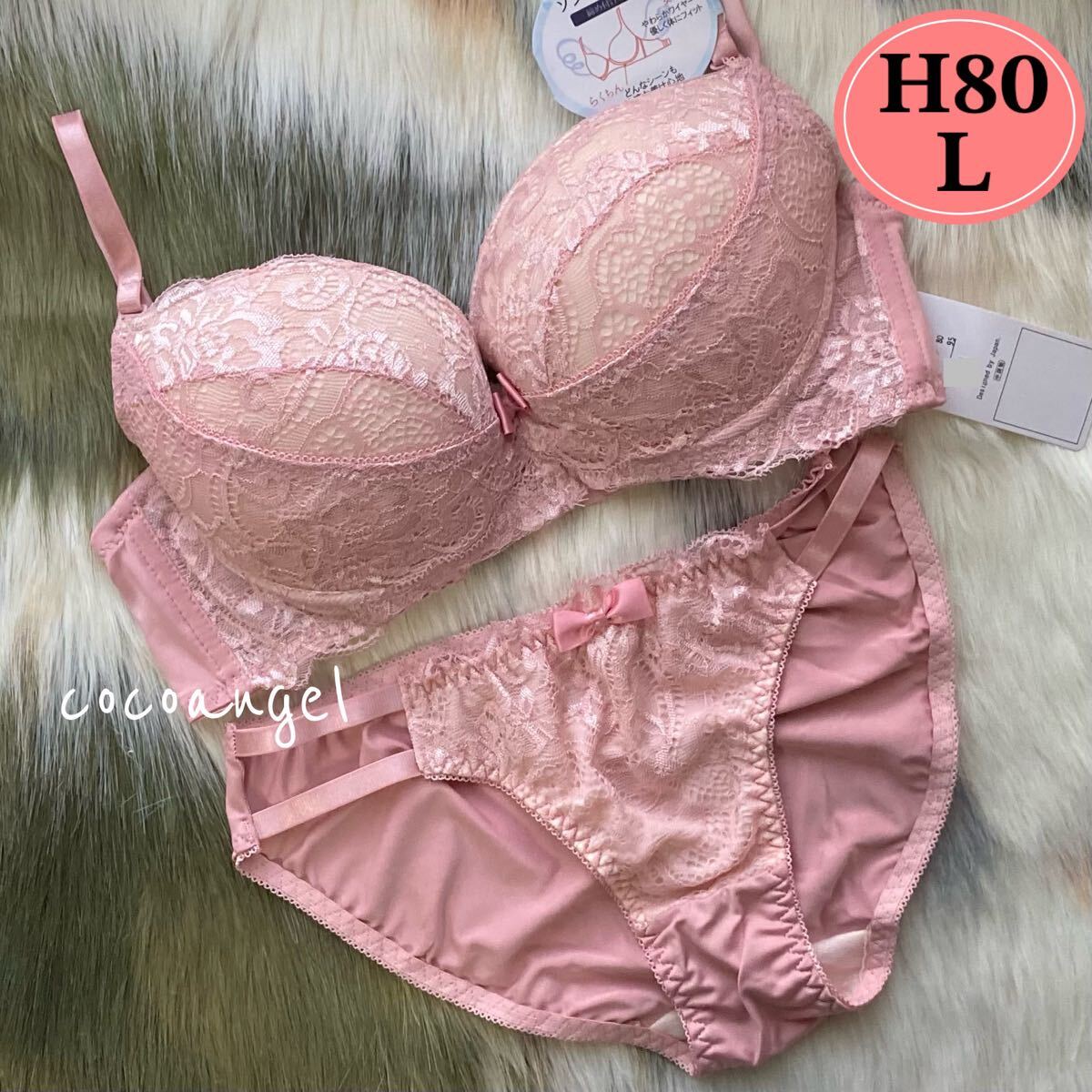- ラスト【H80-L ピンク 上下セット】新品 ブラ&ショーツ ブラジャーショーツ パッド付き レース かわいいパンティ 男性ブラ 女装 Hカップ