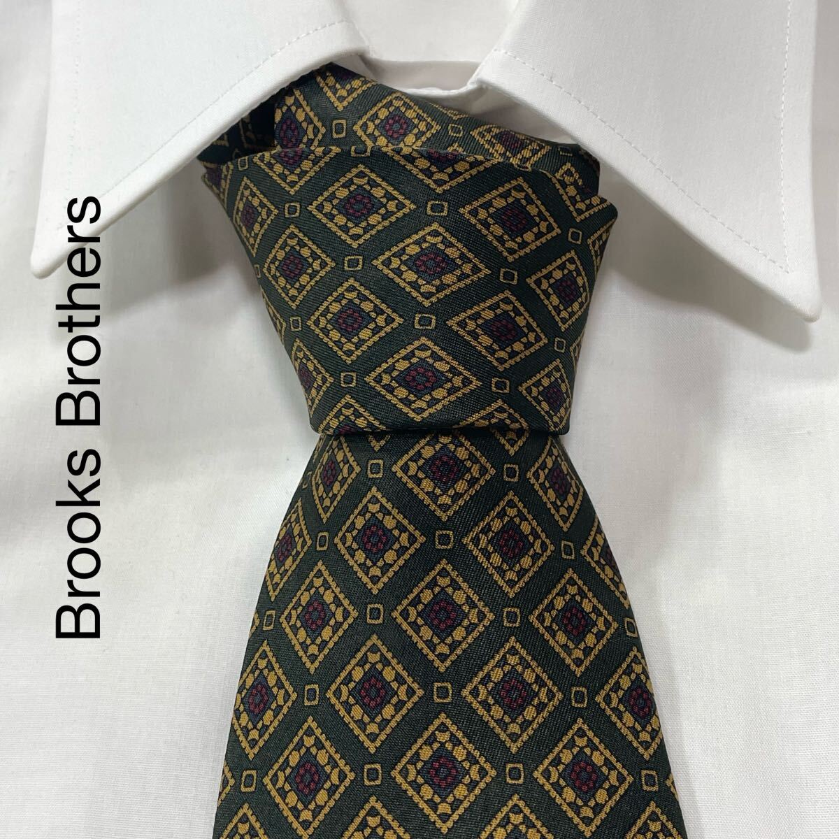 > Brooks Brothers ブルックスブラザーズ パターン柄 シルク ネクタイ USA製 グリーン オーカー ワイン ネイビー TG2353
