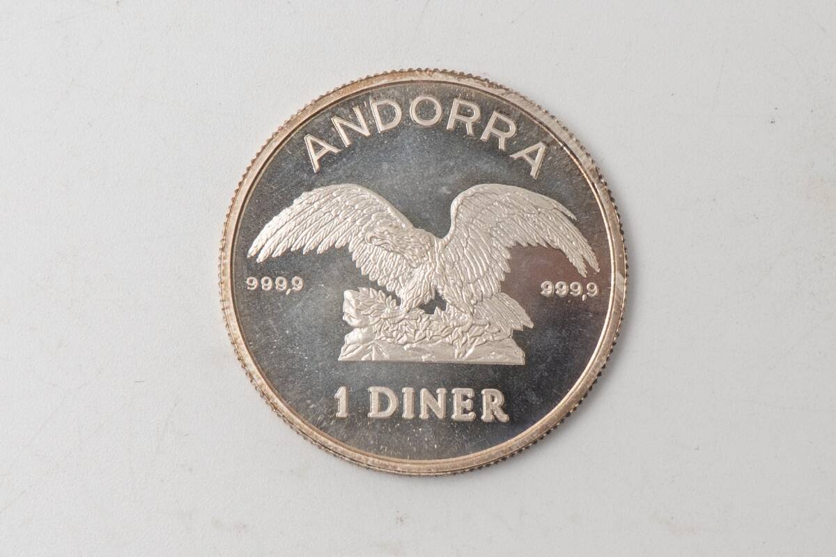 - アンティークコイン アンドラ公国 1ディナール 銀貨 1990年 純銀 999.9 外国コイン 外貨 約10.2g WC-41