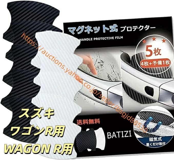 > マグネット式 スズキ ワゴンR WAGON R ドアハンドルWAGON R FX/FZ 傷防止 カーボン 4枚+予備1枚入り ct-wagonr