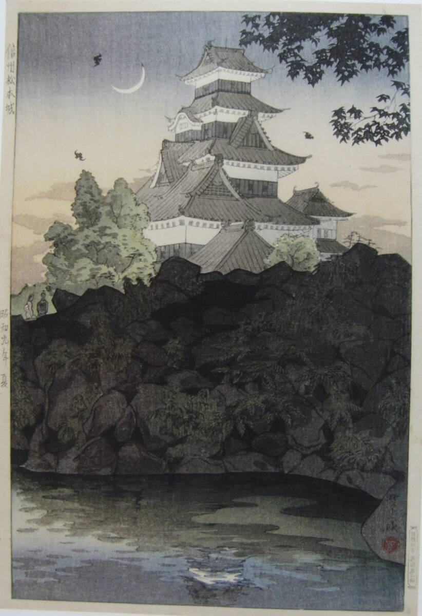 - 笠松 紫浪「信州松本城」 人気作品、希少画集・額装画、日本の風景、状態良好、送料無料