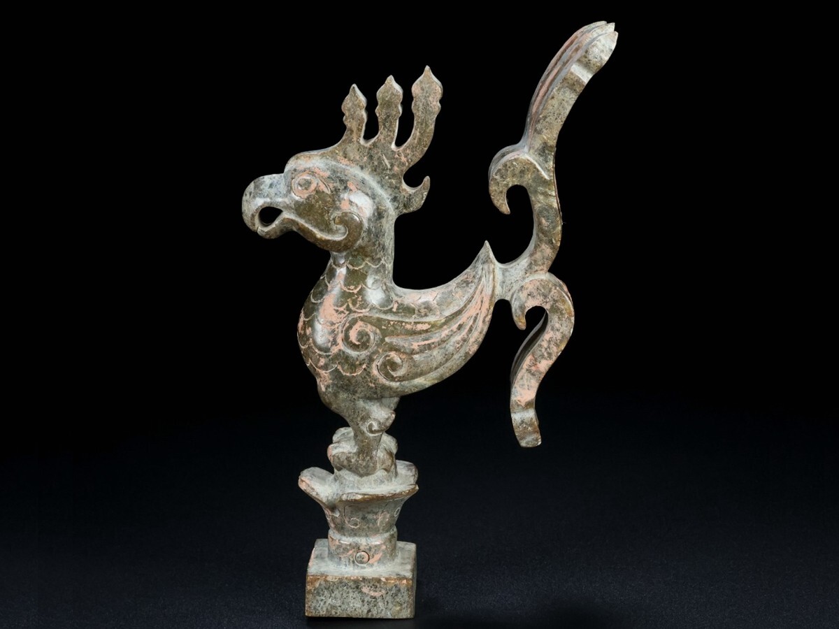 - 「時代物 和田玉 高古玉彫り 商代 鳳鳥」極細工 擺件 中国古賞物 古美術 旧蔵出
