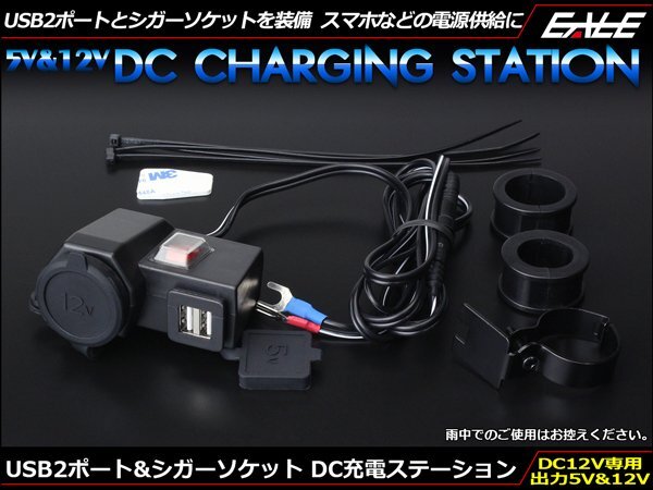 > 充電ステーション USB(5V2.1A) 2ポート&シガーソケット(12V10A) チャージャー ナビ・ドライブレコーダーの電源やスマホの充電などに S-349